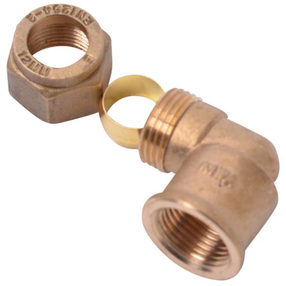 Sanivesk Knelkoppeling Messing Knie (Knel x Binnendraad) 12mm x 3/8"