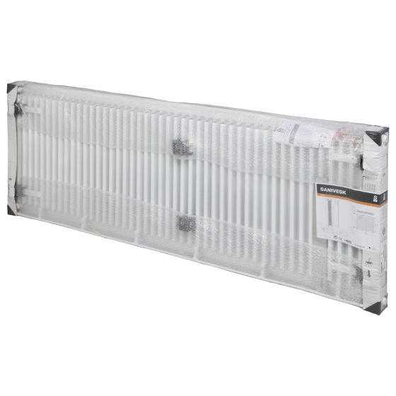 Deze Sanivesk paneelradiator is uitgevoerd met een standaard, geribbelde voorkant en voorzien van 4x 1/2" zij-aansluitingen. Sanivesk paneelradiatoren worden compleet geleverd, inclusief handige ophangbeugels, bouten, pluggen, blind- en ontluchtinsstop. Voor de aansluiting op het leidingwerk is alleen een radiatorkraan, voetventiel en cv aansluitmateriaal nodig.