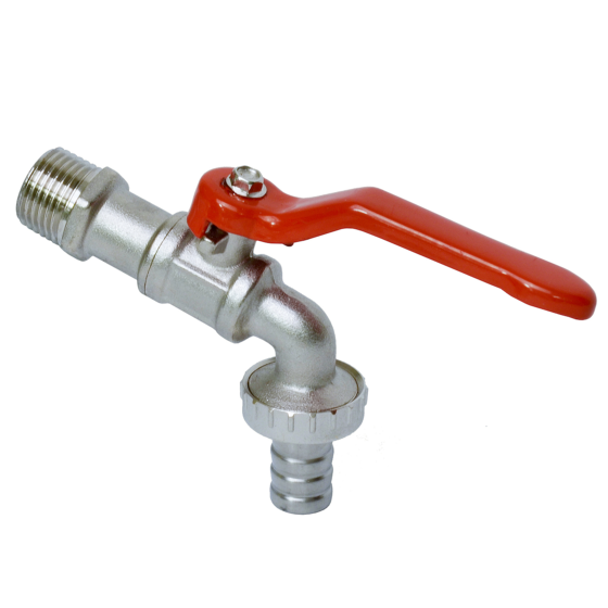 Sanivesk Tap-Kogelkraan met Hendelbediening en Slangwartel Nikkel (Buitendraad x Buitendraad) 3/4" x 3/4"