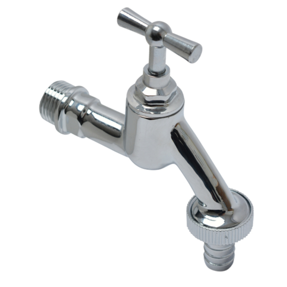 Deze Tapkraan chroom is voorzien van slangwartel en T-kruk bediening. De muurplaataansluiting is ½", de aansluiting voor de wartel is ¾". De bijbehorende slangpilaar is geschikt voor standaard (tuin)slang met een diameter van 1/2"