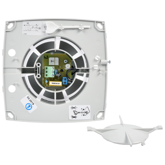 De inbouwventilator is geschikt voor het ventileren van ruimtes tot 10m2. U monteert deze design ventilator met wit front eenvoudig in de wand/plafond van een kamer. U schakelt de inbouwventilator aan en uit met behulp van de aan- en uitschakelaar die u aansluit op het lichtnet. Dankzij de timerfunctie stelt u de design ventilator zelf in waardoor deze automatisch enige tijd blijft draaien en na de ingestelde tijd automatisch weer stopt. De vochtsensor zorgt ervoor dat de inbouwventilator begint te draaien zodra het vochtgehalte in de kamer toeneemt.