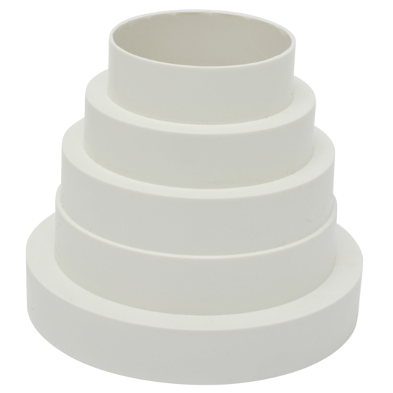 Dit verloopstuk is geschikt voor het koppelen van luchtbuizen, of ventilatiekanalen, van minimaal 80mm doorsnee aan luchtbuizen van maximaal 150mm doorsnee. De verbinding met behulp van het verloopstuk is lucht- en waterdicht, zodat de ventilatiekracht optimaal blijft.