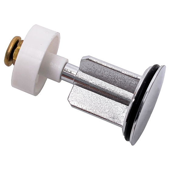 Deze afvoerstop in een verchroomde uitvoering wordt gebruikt om de afvoer van een wastafel af te sluiten.