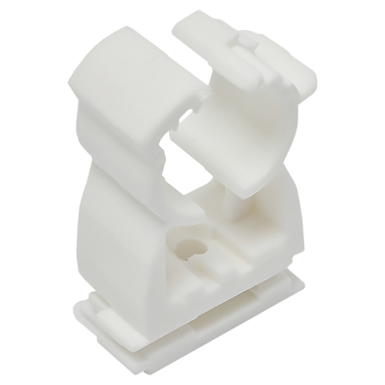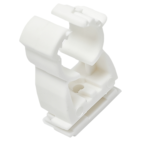 Kunststof beugel voor het bevestiging van buizen met klik bevestiging. Door deze klik bevestiging zitten de buizen extra stevig vast.