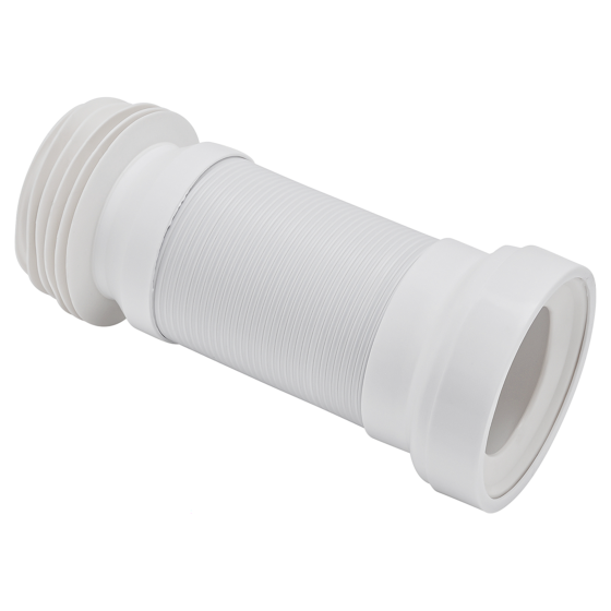 Deze flexibele witte buis is zeer geschikt als overgangsbuis tussen wc pot en rioolbuis. De maat van de flexibelebuis is 110mm.