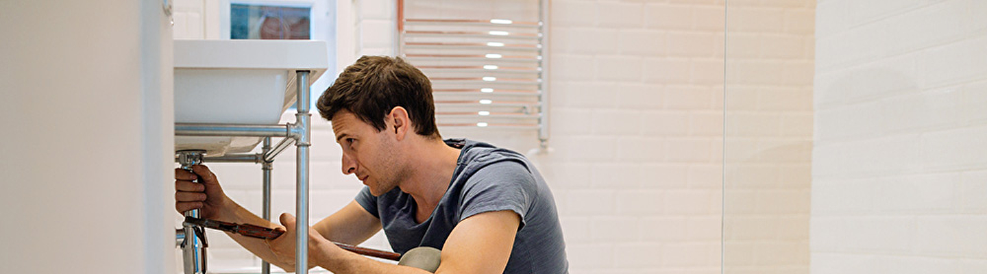 - Gebruik een waterpas om ervoor te zorgen dat de wastafel waterpas is en pas indien nodig de positie aan.
