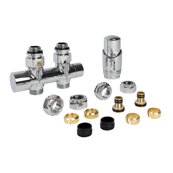 Over het product Deze luxe en complete onderblokset wordt gebruikt voor het aan de onderzijde aansluiten van handdoek-, design- en paneelradiatoren. De complete set bestaat uit een luxe onderblok, verloopnippels 3/4" x 1/2", aansluitkoppelingen voor koperen/stalen buis 15mm en meerlagenbuis 16x2mm én een luxe thermostaatknop chroom.