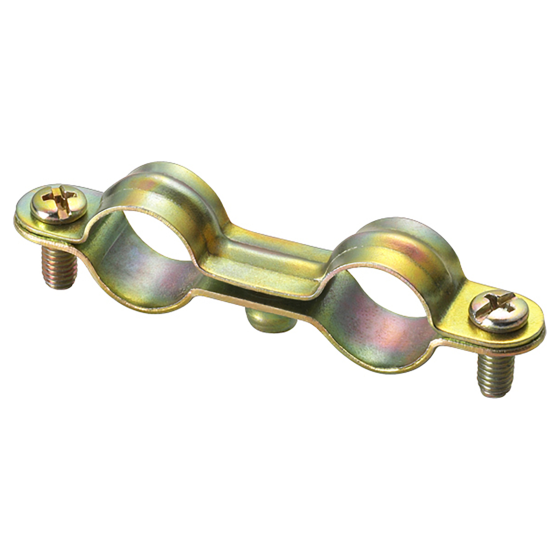 Kunststof dubbele beugel voor het bevestiging van buizen.