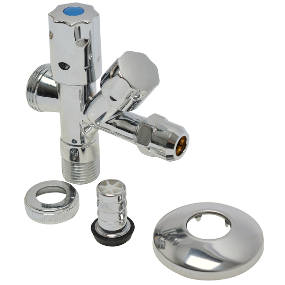 Over het product Deze Sanivesk Hoekstopkraan met dubbele uitloop wordt gebruikt voor de aansluiting van een reservoir, wasmachine of kraan op de waterleiding. Door middel van het afsluiten van deze hoekstopkraan kunnen werkzaamheden aan het reservoir of kraan, zoals reparatie of vervanging, plaatsvinden zonder het totale waterleidingsysteem af te sluiten. Geschikt voor zowel warm- als koud water.
