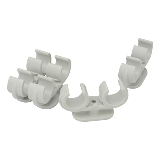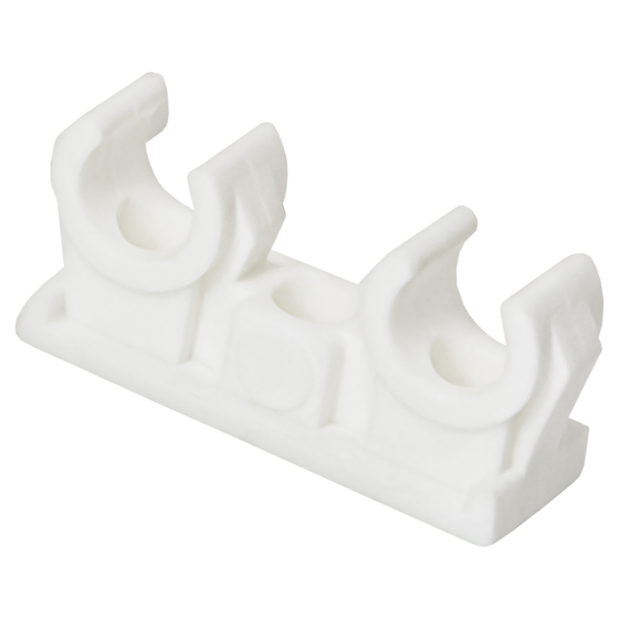 Klembeugel dubbel Bevestigingsmateriaal om twee roodkoperen buizen van 22 mm naast elkaar te bevestigen. Wordt door middel van een dübel (spijker met schroefdraadkop) bevestigd. Dübels zijn ook in dit assortiment verkrijgbaar.