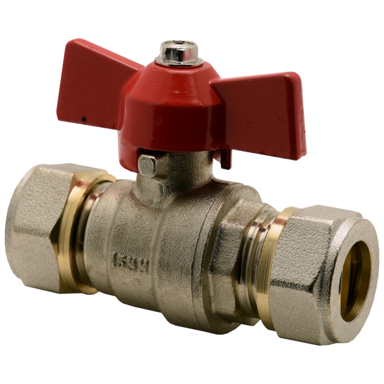 Deze kogelkraan met vlinder greep is voorzien van knel aansluitingen. Deze kogelkraan kun je gebruiken voor het tijdelijk afsluiten van de waterleiding op plaatselijk niveau. Zo hoef je niet de hoofdkraan af te sluiten en kan er op andere plaatsen nog gebruik gemaakt worden van het water.