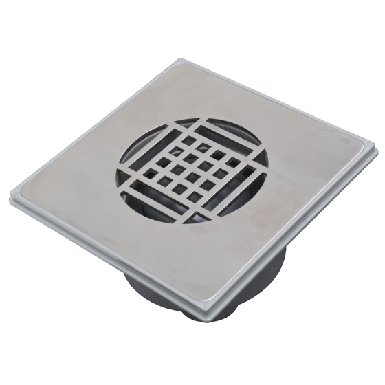 Deze design doucheput recht met RVS rooster heeft een inbouwmaat van 150x150mm met de inbouwhoogte 58mm