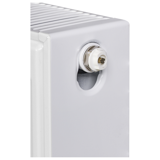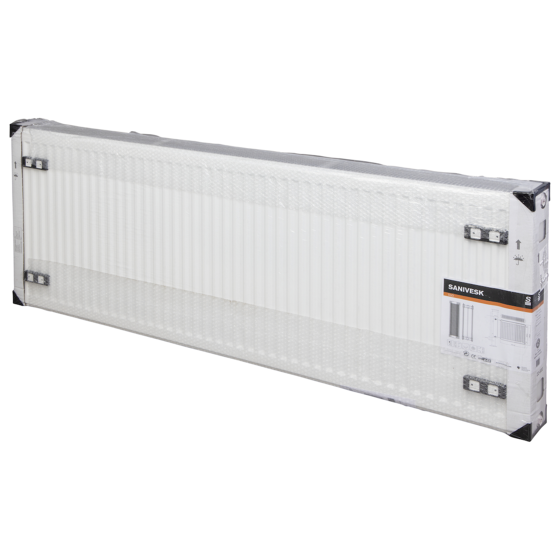 Deze Sanivesk paneelradiator is uitgevoerd met een standaard, geribbelde voorkant en voorzien van 4x 1/2" zij-aansluitingen. Sanivesk paneelradiatoren worden compleet geleverd, inclusief handige ophangbeugels, bouten, pluggen, blind- en ontluchtinsstop. Voor de aansluiting op het leidingwerk is alleen een radiatorkraan, voetventiel en cv aansluitmateriaal nodig.