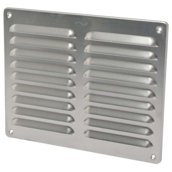 Met het rooster dekt u ventilatiekanalen af. U monteert het schoepenrooster eenvoudig op buitenmuren, deuren of kozijnen. Het aluminium schoepenrooster zorgt dan voor natuurlijke ventilatie, maar kan ook een toevoer- of afvoerrooster van mechanische ventilatie zijn. Dan sluit u het aluminium schoepenrooster aan op het ventilatiekanaal.