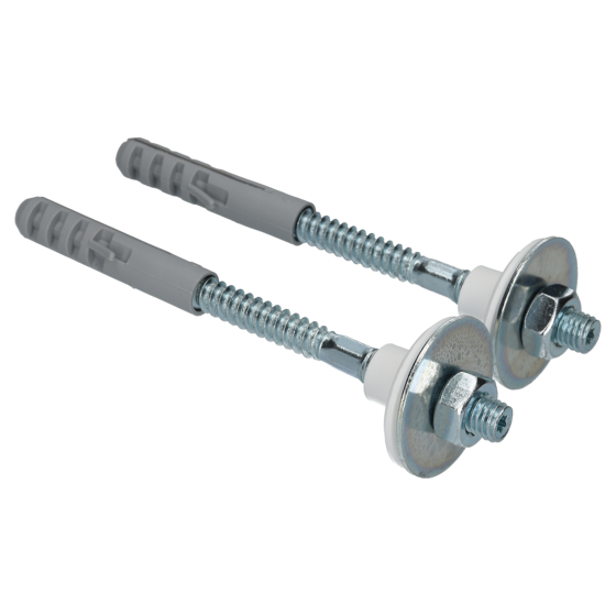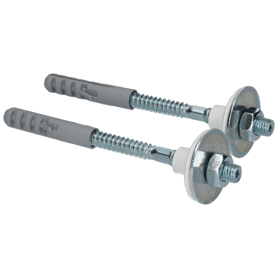 Over het product Set wastafeldraadstiften voor de montage van wastafels. De draadstiften worden met de pluggen in de muur bevestigd. Vervolgens kan de wastafel geplaatst worden. De kunststof plaatjes over de draadstiften schuiven en de moer bevestigen. De moer aandraaien totdat deze normaal vast zit. ”Vast is vast” is hier van toepassing om breuk of scheuren te voorkomen. Na plaatsing de rand aan de muurzijde afkitten.