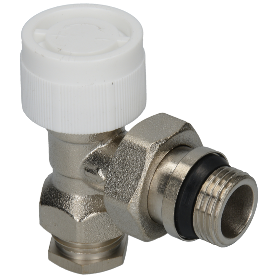 Een thermostatische radiatorkraan voor het regelen van de warmteafgifte van de radiator. Kraan nooit naar boven gericht monteren